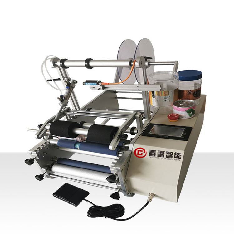 Máy dán nhãn chai tròn bán tự động (bao gồm cả màn hình hiển thị) là máy dán nhãn bán tự động, phù hợp để dán nhãn các thông số kỹ thuật khác nhau của các vật thể hình trụ, nhãn chai tròn côn nhỏ, chẳng hạn như xylitol, chai tròn mỹ phẩm, chai rượu, v.v. máy in và máy in phun, ghi nhãn và in số lô sản xuất và các thông tin khác cùng một lúc, giảm quy trình đóng gói và nâng cao hiệu quả sản xuất.